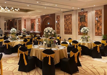 Elegant banquet hall perfect for weddings, parties and events, with customized decor and seamless arrangements.