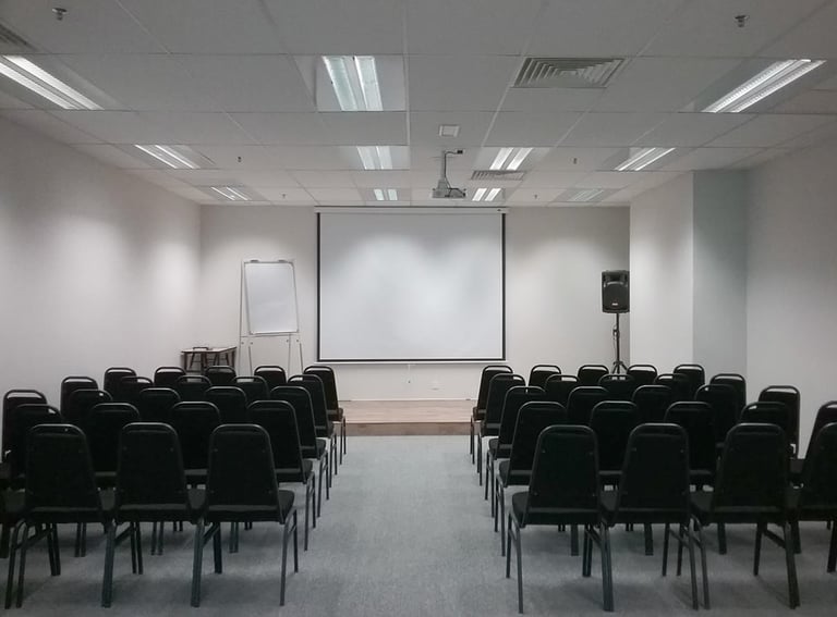 Fully equipped conference hall with modern technology for business meetings, seminars and corporate gatherings in a professional setting.
